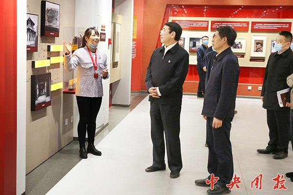 倪邦文代表学校向海淀区委书记于军一行的到来表示热烈欢迎,向海淀区委区政府长期以来对我校建设发展的关心与支持表示衷心感谢,并简要介绍了中央团校改革背景、学校学术报告综合楼建设和基础设施改造项目基本情况,以及为庆祝建团100周年筹备的党的青年运动史展览布展情况,表示将立足基本职能,发挥自身优势,更加积极主动对接海淀区,共同为区域和谐稳定发展贡献力量。张泽民就目前建设和改造项目中的关键环节、重点任务作了说明。