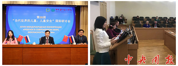 新闻中心讯 近日,应俄罗斯国立师范大学邀请,我校参加了“当代世界的儿童:儿童安全”国际研讨会。校党委副书记、常务副校长陆玉林,俄罗斯国立师范大学校长谢尔盖·瓦连京诺维奇·塔拉索夫出席开幕式并致辞。我校青少年工作系教师何玲、齐亚静,党史与青运史系教师郑伦参加会议主论坛并作主旨报告。来自俄罗斯、白俄罗斯、塞浦路斯、瑞典等国家的近100名学者在线上线下参加了会议。