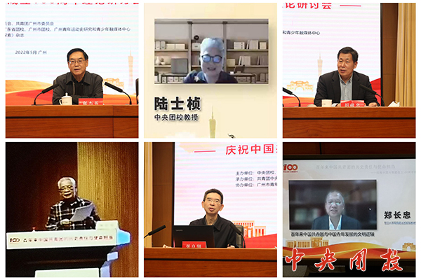 新闻中心讯 在深入学习贯彻习近平总书记在庆祝中国共产主义青年团成立100周年大会上的重要讲话精神之际,5月13日,由中央团校、团广东省委、团广州市委联合举办了“百年来中国共青团的历史责任与使命担当——庆祝中国共青团成立100周年理论研讨会”。本次研讨会以线上、线下相结合的方式召开,来自全国的中共党史、团史青运史、青年工作研究专家学者、青年工作者、获奖论文作者、部分高校师生共500多人参加了会议。