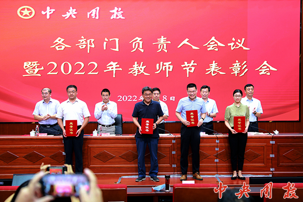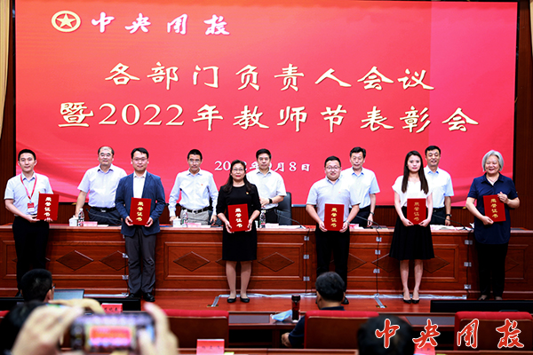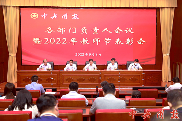新闻中心讯 在第38个教师节到来前夕,9月8日,我校召开各部门负责人会议暨2022年教师节表彰会。对14名2022年优秀教师、优秀教育工作者进行表彰,对改革5年来学校取得的成绩和经验进行总结,对本学期重点工作进行部署。党委书记倪邦文出席会议并讲话。
